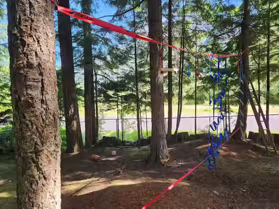 - Let the kids run wild with ninja bars and a zip line tucked into the trees